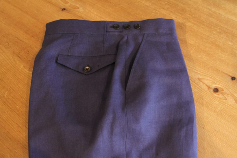 前回ご紹介したアイリッシュリネンで、ショーツも製作しました。私がロンドンに住んでいた頃、ブライトンの海辺に海水浴に訪れた際、味のある麻のショーツを履いた初老の紳士の姿が忘れられず、ずっと記憶に残っていました。いつか自分も年を重ねたら履きたいと思っていたイメージを実現することができました。