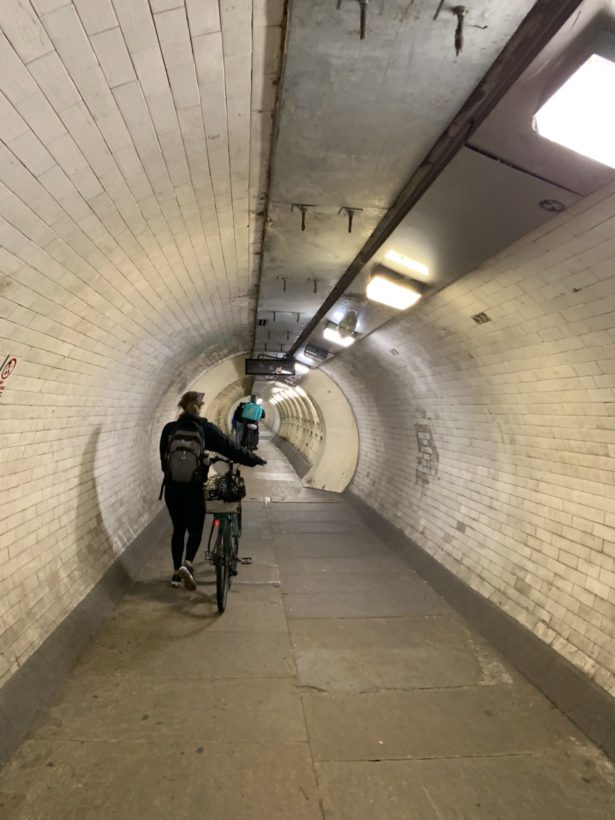 グリニッジはテムズ川を挟んで南側に位置するので、テムズ川の下を地下トンネルで潜って渡ります。