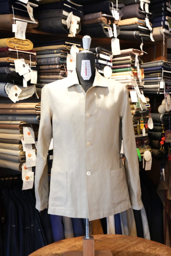 めっきり寒くなったので夏の猛暑を忘れがちですが、夏に残した宿題とも言えるワンピースジャケットの受注をようやくスタートすることになりました。読んで字の如く、ワンピース=一枚仕立ての軽快なジャケットは、人によっては”シャツジャケット”とも呼ぶ、今の時代のニーズに合ったアイテムです。